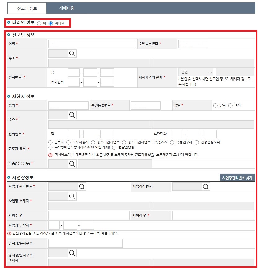 신고인정보와 재해내용 작성하기