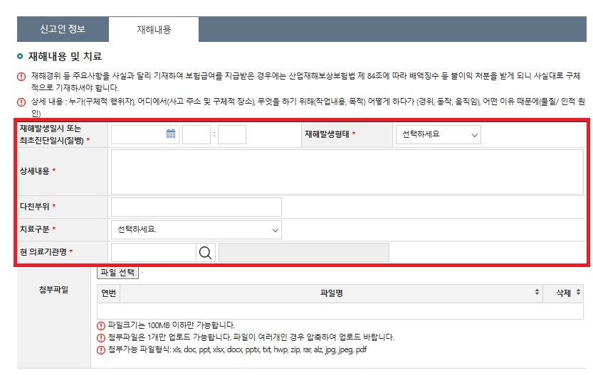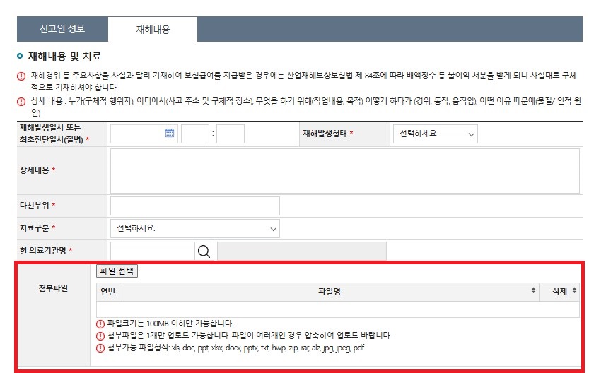 산재 첨부파일 첨부하기